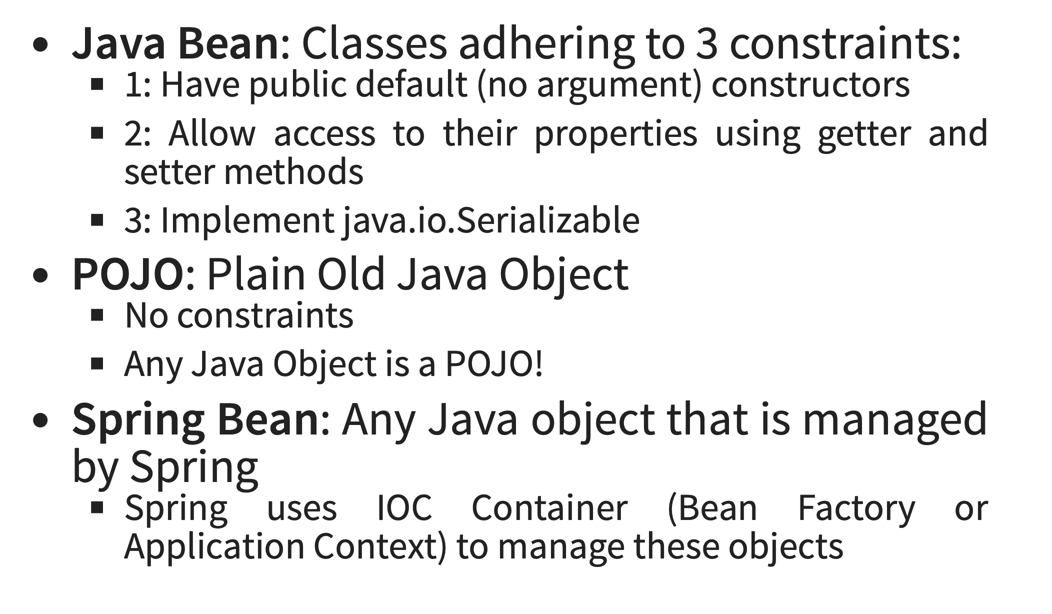 Spring Bean, Java Bean, 일반적인 클래스 => 모두 POJO에 속한다.